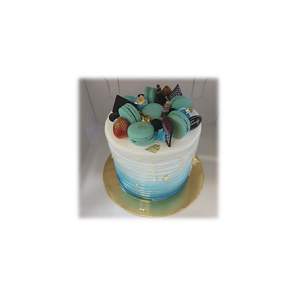 Blue Theme Tall Drip Cake